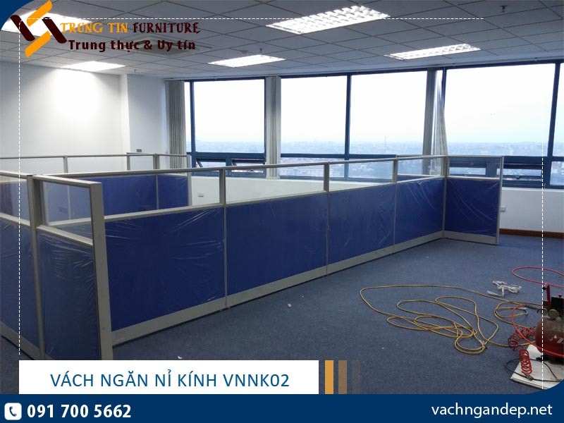 Thi công vách ngăn nỉ kính và module bàn làm việc tại 82 Duy Tân