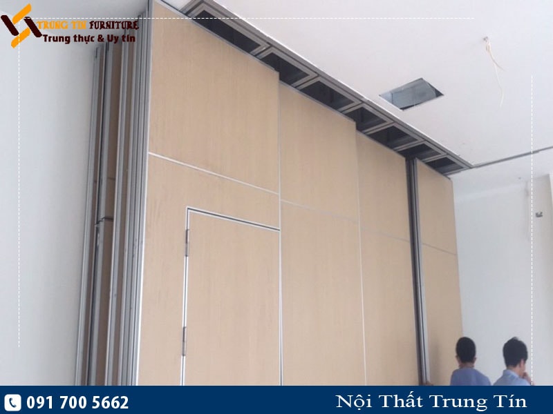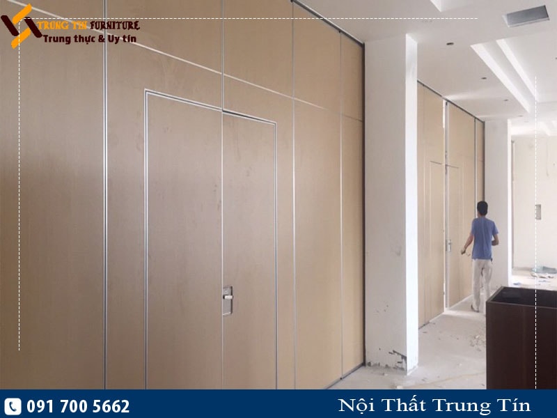 Tên sản phẩm: Vách ngăn di động 2 trục hệ 65mm – Chủ đầu tư: Nhà hàng tiệc cưới tại Mê Linh, Hà Nội – Khối lượng: 305m2 – Thời gian thi công hoàn thiện: 30 ngày – Chất liệu: bề mặt melamin Nam Hải