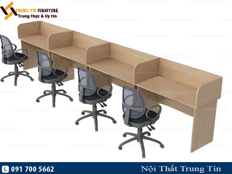 Cụm bàn làm việc có vách ngăn, chất liệu gỗ công nghiệp MFC phủ melamin, với đa dạng chất liệu, màu sắc và kích thước, các sản phẩm bàn làm việc có vách ngăn sẽ mang đến cho khách hàng nhiều sự lựa chọn phù hợp cả về không gian và giá cả. Bàn thuận tiện tháo rời và di chuyển, chất liệu bền không sợ mối mọt cong vênh.