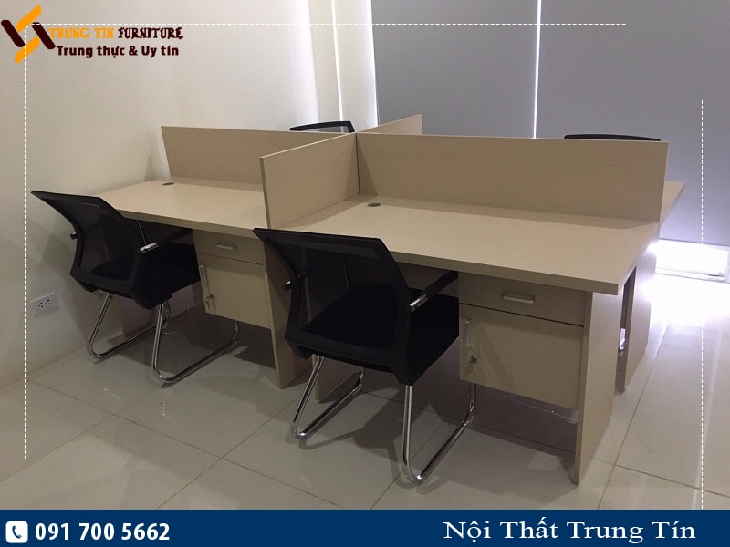 Cụm bàn làm việc có vách ngăn, chất liệu gỗ công nghiệp MFC phủ melamin, với đa dạng chất liệu, màu sắc và kích thước, các sản phẩm bàn làm việc có vách ngăn sẽ mang đến cho khách hàng nhiều sự lựa chọn phù hợp cả về không gian và giá cả. Bàn thuận tiện tháo rời và di chuyển, chất liệu bền không sợ mối mọt cong vênh.