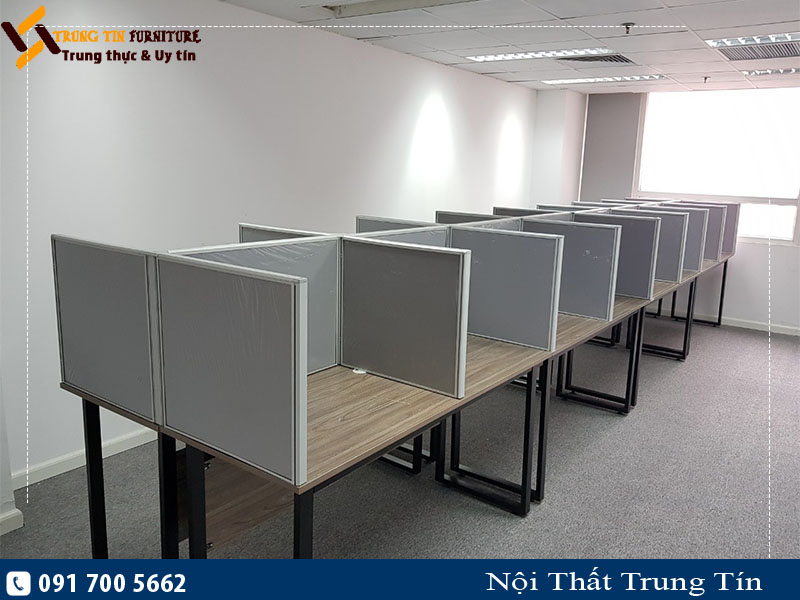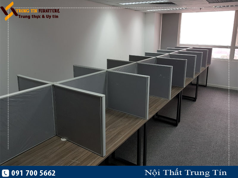 Vách nỉ ngăn bàn làm việc sử dụng khung nhôm phun cát, vách nỉ toàn bộ được lắp trên mặt bàn nhằm tiết kiệm chi phí. Vách ngăn có kết cấu vững chắc, thông minh, dễ dàng tháo lắp, tạo không gian làm việc theo module gọn gàng ngăn nắp với không gian làm việc riêng. Sản phẩm vách ngăn văn phòng có tông sáng dễ dàng phối màu với các đồ nội thất khác, thi công sản xuất nhanh, giá thành hợp lý nên được rất nhiều khách hàng ưa chuộng.