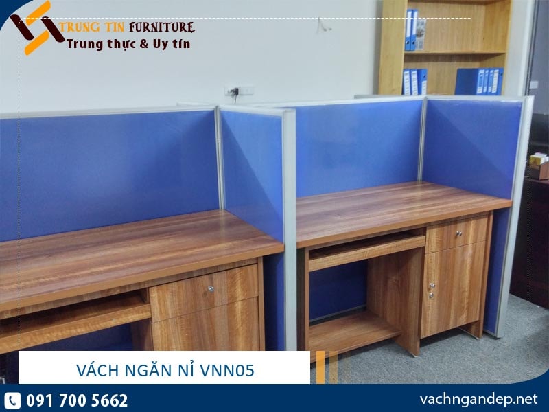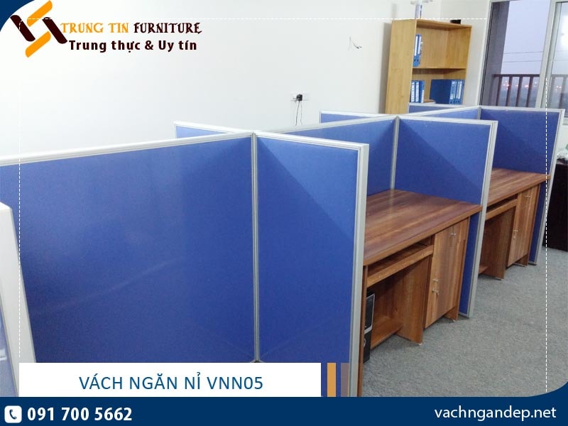 Vách ngăn văn phòng nỉ VNN05 sử dụng khung nhôm phun cát, vách nỉ toàn bộ, dưới có hộp kỹ thuật. Vách ngăn nỉ VNN05 có kết cấu vững chắc, dễ dàng tháo lắp, tạo không gian làm việc theo module gọn gàng ngăn nắp với không gian làm việc riêng. Sản phẩm vách ngăn văn phòng có tông sáng dễ dàng phối màu với các đồ nội thất khác, thi công sản xuất nhanh, giá thành hợp lý nên được rất nhiều khách hàng ưa chuộng.