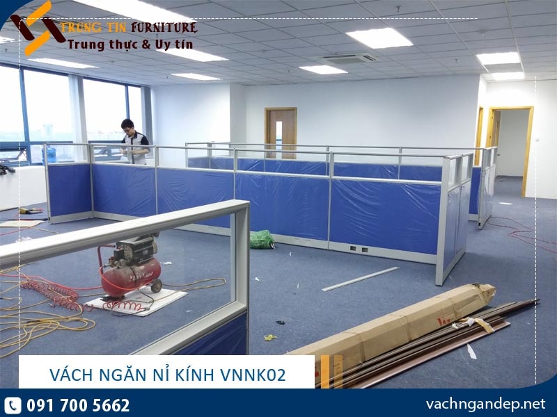 Vách ngăn văn phòng nỉ kính VNNK02 sử dụng khung nhôm phun cát, bao gồm 2 vách: vách trên kính, vách dưới Nỉ, phân tách bằng khung nhôm. Vách ngăn nỉ kính VNNK02 có kết cấu vững chắc, dễ dàng tháo lắp, tạo không gian làm việc theo module gọn gàng ngăn nắp với không gian làm việc riêng. Sản phẩm vách ngăn văn phòng có tông sáng dễ dàng phối màu với các đồ nội thất khác, thi công sản xuất nhanh, giá thành hợp lý nên được rất nhiều khách hàng ưa chuộng.