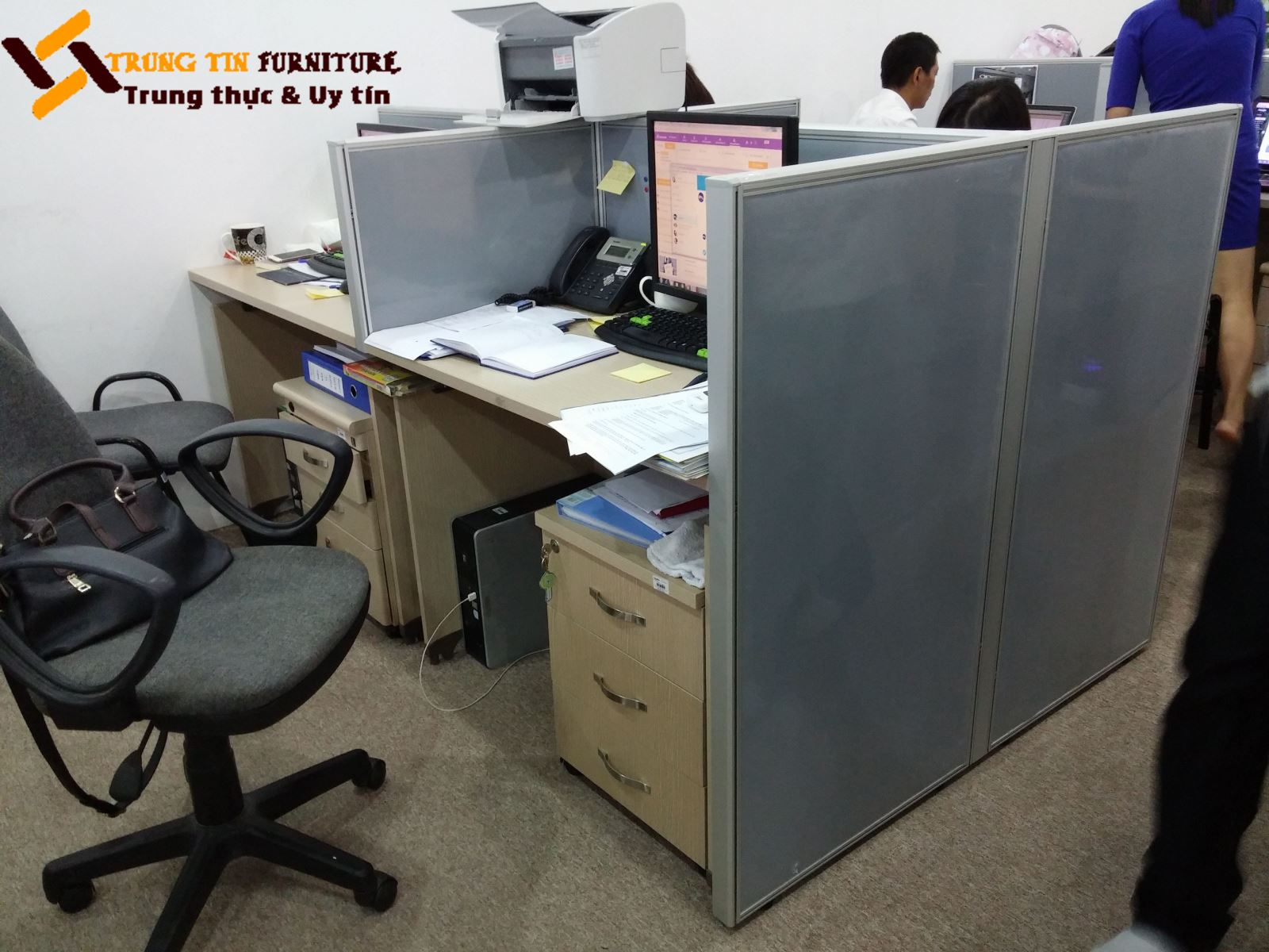 Vách ngăn văn phòng nỉ VNN01 sử dụng khung nhôm phun cát, vách nỉ toàn bộ, dưới có hộp kỹ thuật. Vách ngăn nỉ kính VNN01 có kết cấu vững chắc, thông minh, dễ dàng tháo lắp, tạo không gian làm việc theo module gọn gàng ngăn nắp với không gian làm việc riêng. Sản phẩm vách ngăn văn phòng có tông sáng dễ dàng phối màu với các đồ nội thất khác, thi công sản xuất nhanh, giá thành hợp lý nên được rất nhiều khách hàng ưa chuộng.