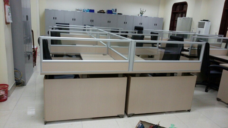 Vách ngăn văn phòng gỗ kính sử dụng khung nhôm phun cát, bao gồm 2 vách: vách trên kính, vách dưới gỗ, phân tách bằng khung nhôm. Vách ngăn có kết cấu vững chắc, dễ dàng tháo lắp, tạo không gian làm việc theo module gọn gàng ngăn nắp với không gian làm việc riêng. Sản phẩm vách ngăn văn phòng gỗ kính có nhiều màu sắc vân gỗ dễ dàng phối màu với các đồ nội thất khác, thi công sản xuất nhanh, dễ dàng tháo lắp di chuyển, giá thành hợp lý nên được rất nhiều khách hàng ưa chuộng.