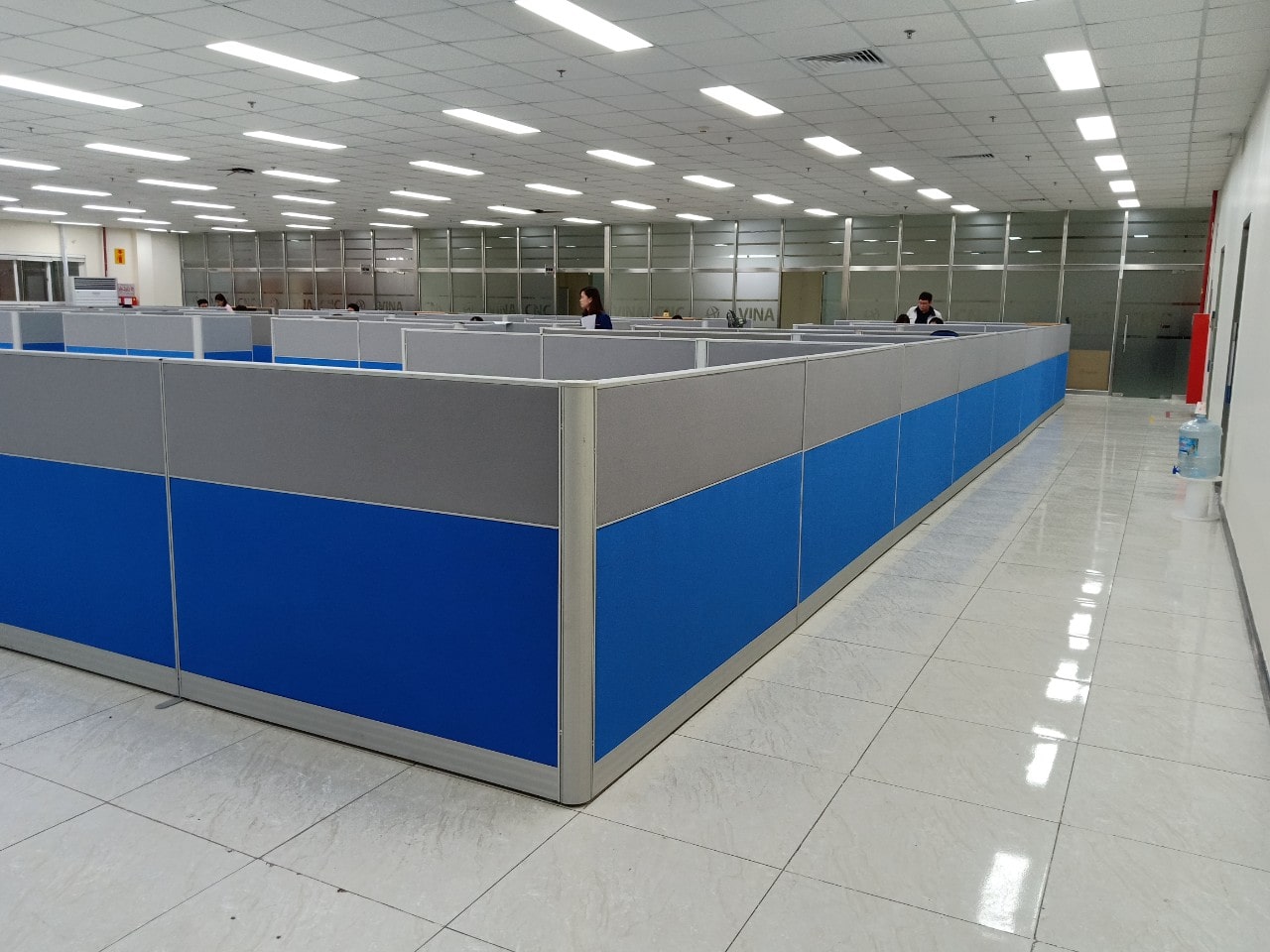 Vách ngăn văn phòng khung nhôm gỗ có kết cấu vững chắc, dễ dàng tháo lắp, tạo không gian làm việc theo module gọn gàng ngăn nắp với không gian làm việc riêng. Sản phẩm vách ngăn văn phòng nỉ xếp tầng có nhiều màu sắc nỉ dễ dàng phối màu với các đồ nội thất khác, thi công sản xuất nhanh, dễ dàng tháo lắp di chuyển, giá thành hợp lý nên được rất nhiều khách hàng ưa chuộng.