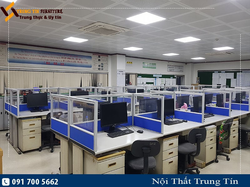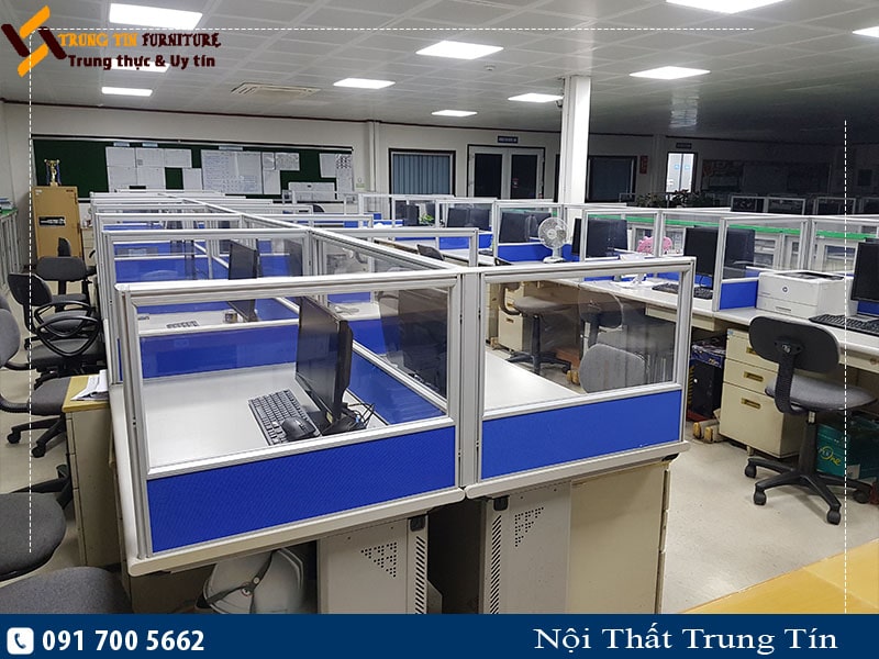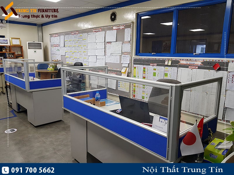 Vách ngăn nỉ kính trên mặt bàn chia không gian làm việc thành nhiều phần khác nhau rất phù hợp với dân văn phòng là ưu điểm nổi bật của mẫu vách ngăn nỉ kính. Vách ngăn sử dụng khung nhôm sơn tĩnh điện ánh nhôm chắc chắn, bề mặt phía dưới bọc vải nỉ, phía trên kính trong. Sử dụng mẫu vách ngăn văn phòng này không những bền đẹp, giá hợp lý là còn rất hợp thời trang.