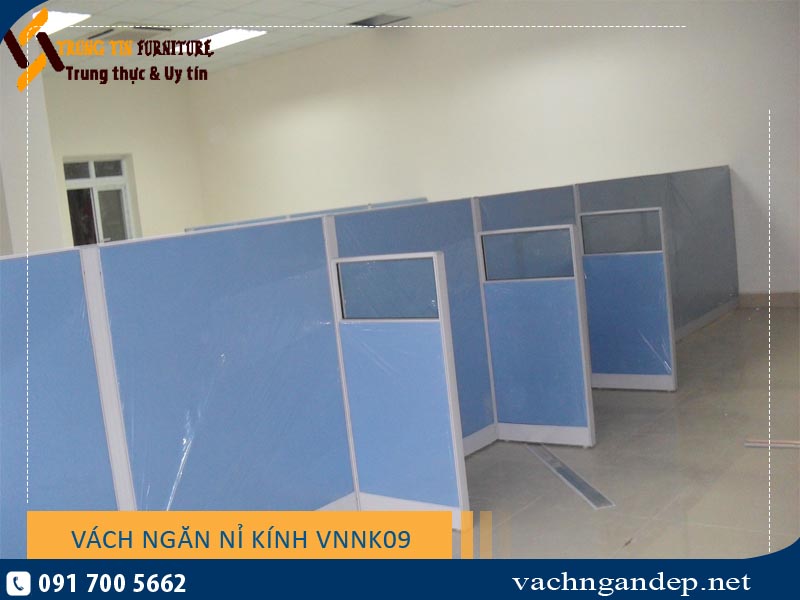Vách ngăn văn phòng nỉ kính VNNK09 sử dụng khung nhôm phun cát, bao gồm 2 vách: vách trên kính, vách dưới Nỉ, phân tách bằng khung nhôm. Vách ngăn nỉ kính VNNK09 có kết cấu vững chắc, dễ dàng tháo lắp, tạo không gian làm việc theo module gọn gàng ngăn nắp với không gian làm việc riêng. Sản phẩm vách ngăn văn phòng có tông sáng dễ dàng phối màu với các đồ nội thất khác, thi công sản xuất nhanh, giá thành hợp lý nên được rất nhiều khách hàng ưa chuộng.