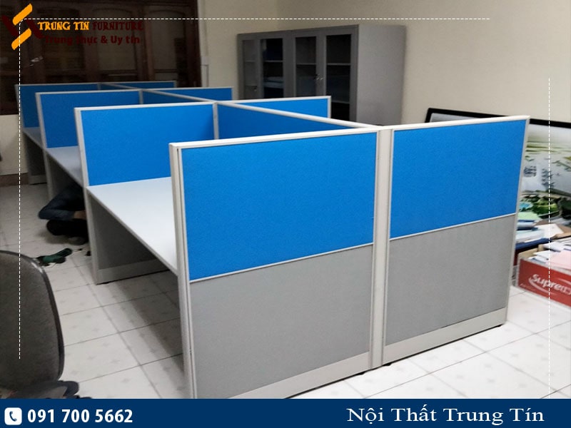 Vách nỉ ngăn bàn làm việc sử dụng khung nhôm phun cát, vách nỉ toàn bộ được lắp trên mặt bàn nhằm tiết kiệm chi phí. Vách ngăn có kết cấu vững chắc, thông minh, dễ dàng tháo lắp, tạo không gian làm việc theo module gọn gàng ngăn nắp với không gian làm việc riêng. Sản phẩm vách ngăn văn phòng có tông sáng dễ dàng phối màu với các đồ nội thất khác, thi công sản xuất nhanh, giá thành hợp lý nên được rất nhiều khách hàng ưa chuộng.