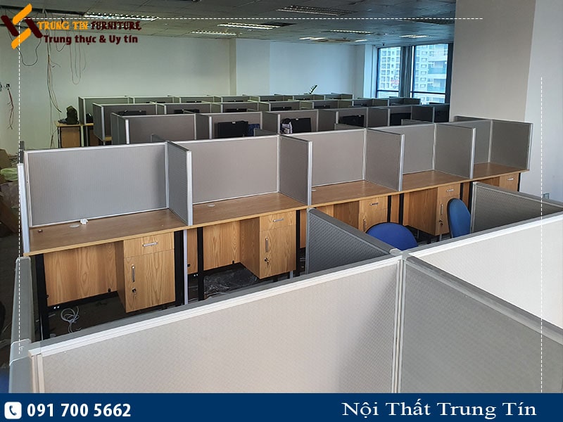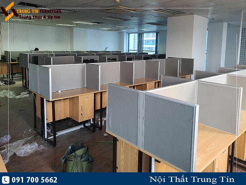 Vách nỉ trên mặt bàn làm việc sử dụng khung nhôm phun cát, vách nỉ toàn bộ được lắp trên mặt bàn nhằm tiết kiệm chi phí. Vách ngăn có kết cấu vững chắc, thông minh, dễ dàng tháo lắp, tạo không gian làm việc theo module gọn gàng ngăn nắp với không gian làm việc riêng. Sản phẩm vách ngăn văn phòng có tông sáng dễ dàng phối màu với các đồ nội thất khác, thi công sản xuất nhanh, giá thành hợp lý nên được rất nhiều khách hàng ưa chuộng.